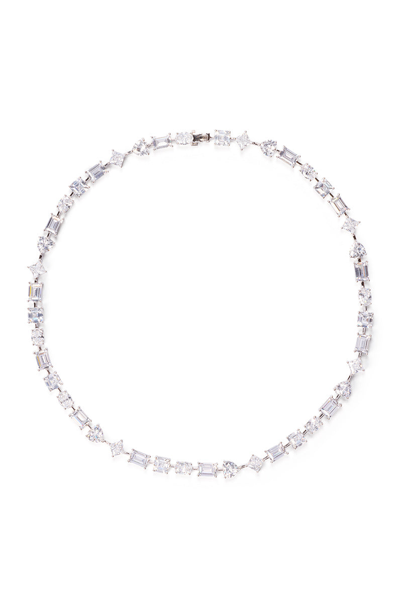 Carbon-finished white topaz quartz crystal catches light like a diamond.