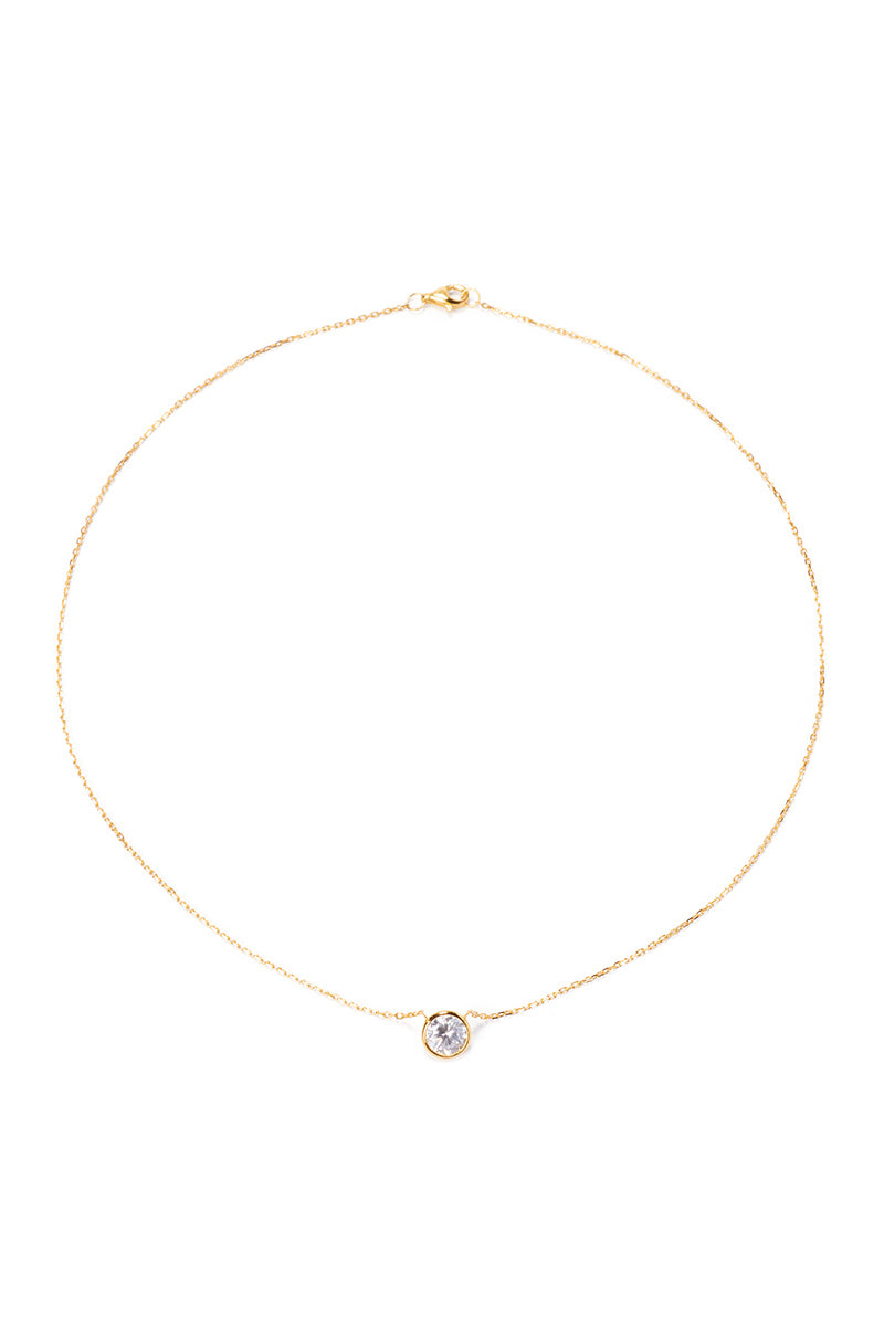 16'' 14k gold finished silver necklace with carbon finished white topaz quartz crystal solitaire pendant {3 CT}. Timeless and chic, made for love, dreams and layering.
